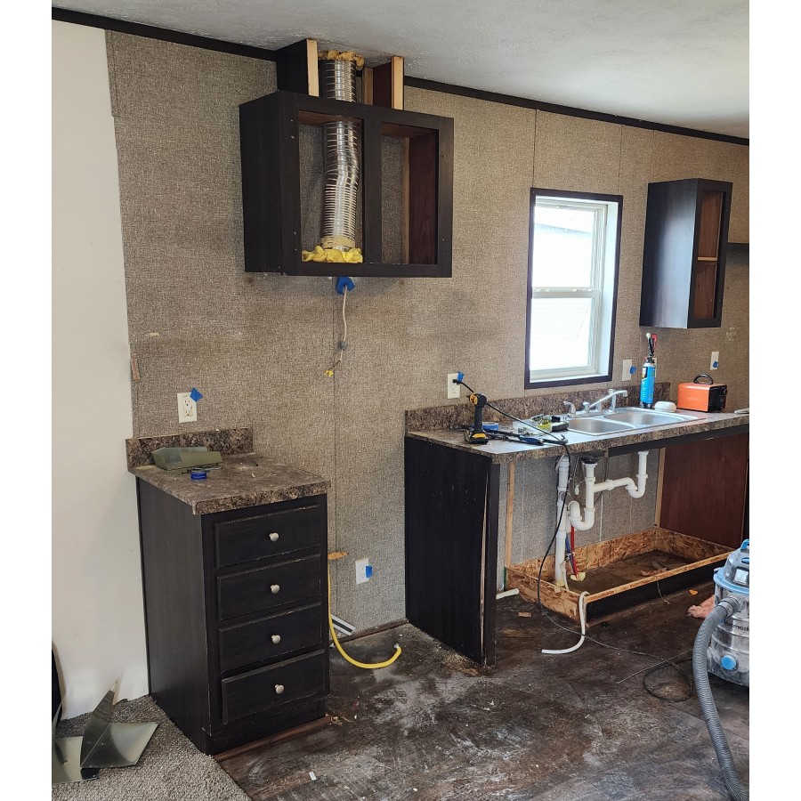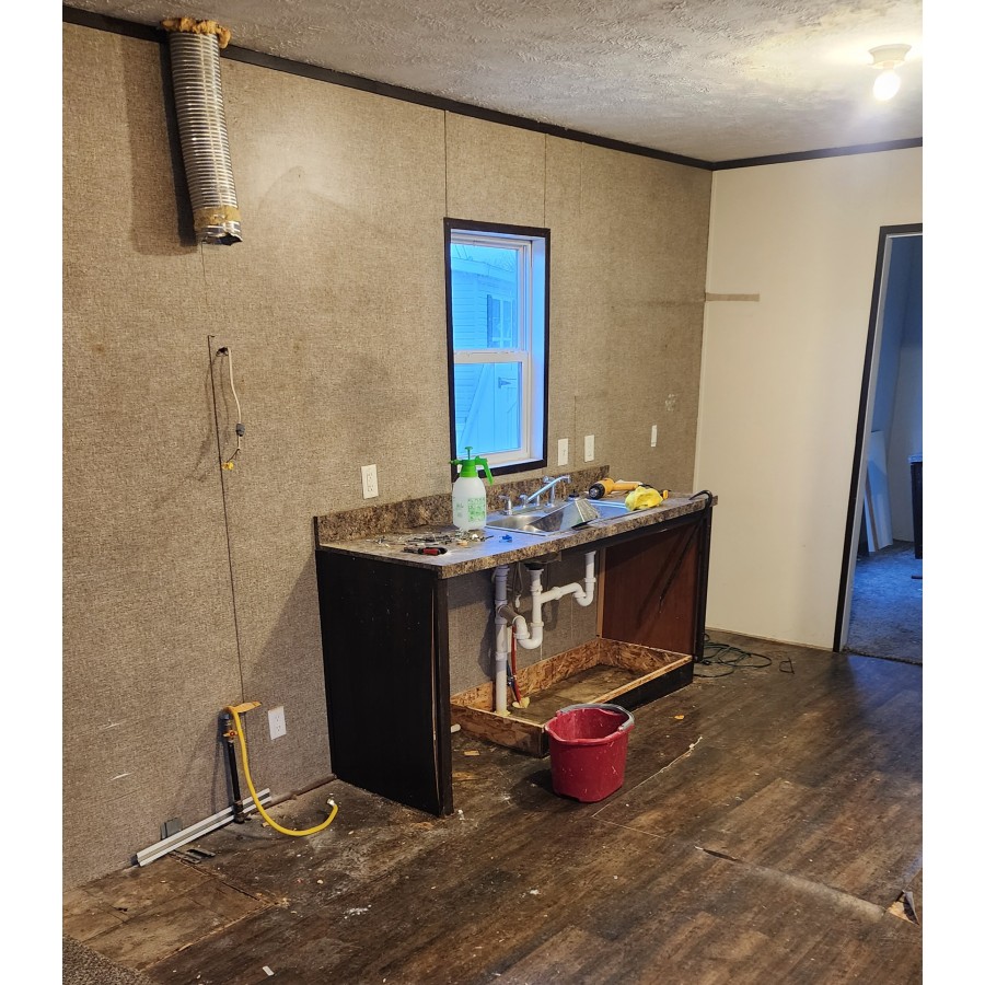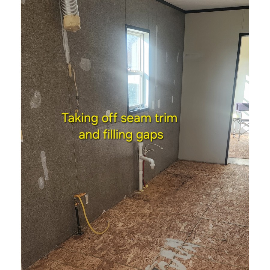 - Took more trim off in bathroom and kitchen