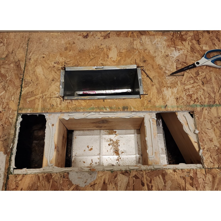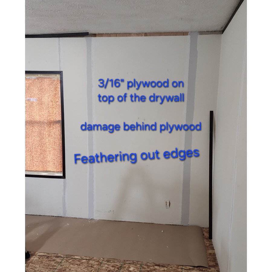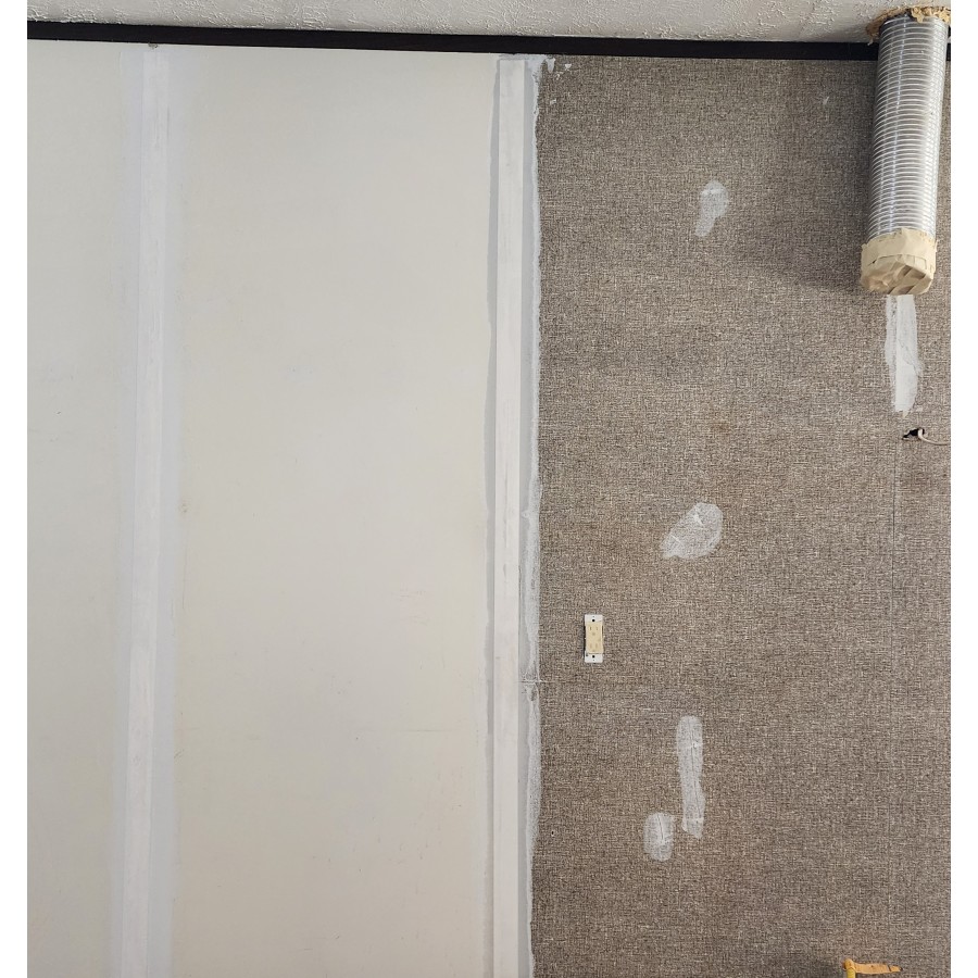 - Spray foamed Filled and 1st drywall coat on holes