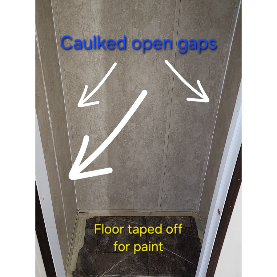 - caulked gapped trim and seams